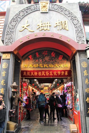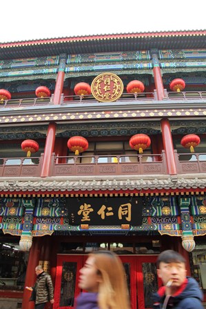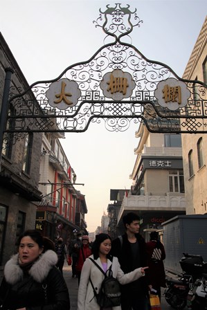 “大柵欄大街”は、前門大街と煤市街を結ぶ250mほどの大きな通りで、歩行者天国になっていて、衣服、靴、薬、お菓子等々の北京の老舗という老舗が全て集まっています。この“大柵欄”の読み方は独特で、中国の標準語読みでは“da zha lan”ですが、北京人は“da shi lar”と言います。こう言いませんと、「田舎者」と笑われてしまいます。東京の人が“ヒクレサト”を“ニッポリ”と言うのと同じです。ちなみに、ある有名な作家の中国を舞台にした小説を読んでいましたら、“大柵欄”が登場し、“da zha lan”とふりがなをふっているのを発見し、ちょっとうれしくなりました。