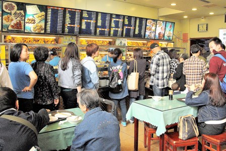 【店内。昼時は大変混雑し、ほぼ無秩序状況のため、注文するのも一苦労です】