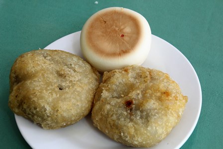 【上が“Dun Bo Bo(墩餑餑)”、下の二つが“あんこ餅を揚げたもの(これは天津が有名ですが、北京でもよく売っています)】