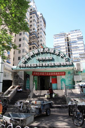 牛街と直角に交わる道を、輸入胡同と言います。この周辺にはアパートが立ち並び、ムスリムが多く住み、彼らのための食料品店が沢山あります。