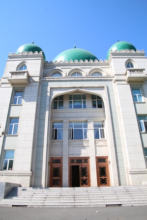 牛街の南端にあるイスラム教の大学(中国イスラム教経学院)。イスラム教らいし建物です。
