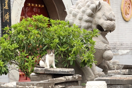 「鴉儿胡同(ya er hu tong)」を通りながら、銀錠橋に戻る途中に、広化寺があります。今回は、この広化寺を見学しようと思っていたのですが、残念ながら、改築中です。しかし、こちらのネコちゃん、門前の大きな狛犬に負けじと同じ姿をしていて、とても格好良いのです。ちなみに、什刹海”の名前は「周辺に“十の名刹(お寺)”があった」ことから由来するともいわれ、広化寺も“十刹”の一つです。