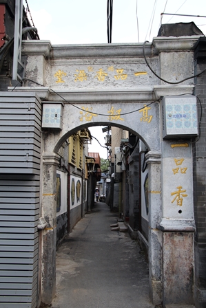 「棕樹斜街」にある“一品香 高級浴”と人目を引く金文字で書かれた浴場の入り口です。この門を潜りますと、細い道に続きますが、今は閉鎖されているらしく、浴場は発見できませんでした。