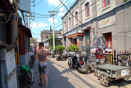 先ほど書いた通り、時代の発展に取り残されているここ八大胡同には、昔あったものがまだ生き生きと残っています。それは、路地で遊ぶ子供の笑い声であったり、玄関前に置かれた緑をたたえる鉢植えであったり、どこからか聞こえてくるマージャンの音であったり、万有引力に逆らわなくなった乳房を隠すでもなく、薄い下着1枚で歩いているおばあさんであったり、上半身裸でつえを持って座っているおじいさんであったりと、まるで、昭和の時代にタイムスリップしたような錯覚に陥ります。それにまして、ここの大小の道は、曲がったり、途切れたり、斜めであったりして、胡同の奥に入れば入るほど、方向感覚が麻痺し、いったい自分がどこにいるのか、分からなくなります。まさに、ここは頭を狂わす場所なのかもしれません。