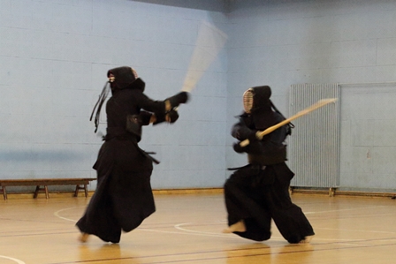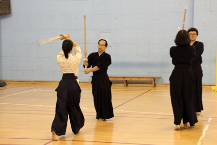 こちらは初級クラスで、面などの防具を付けることが許されていません。へっぴり腰の眼鏡のおじさんは、剣道を習いはじめて、半年が経つそうです。