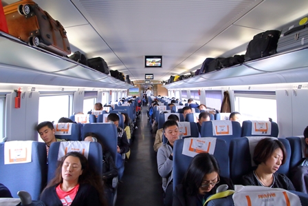 【高速鉄道の2等座席。ほとんどいつも満席です】