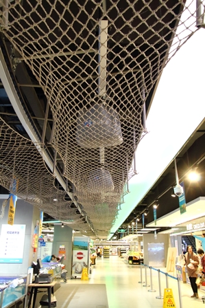しかし、天井のレーンは、本当に必要かと疑ってしまいます。店はそれほど広くはなく、従業員も多くいるのです。日本のスーパーのように、店員がカゴを下げて商品を集めても、スピードと労力はそれほど変わらないと思います。このレーン、視覚的にはインパクトがありますが、よくよく見ると、原始的と言いましょうか、子供だましのものだと笑ってしまいます。