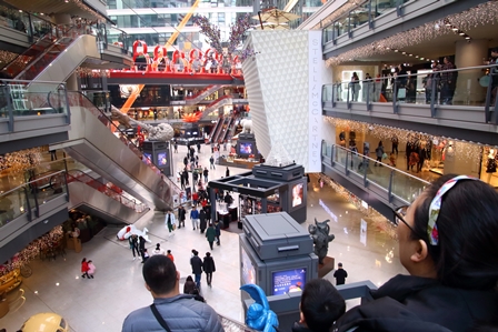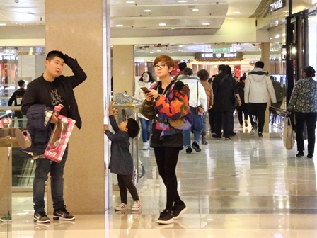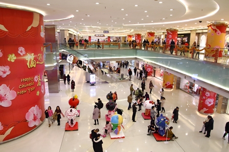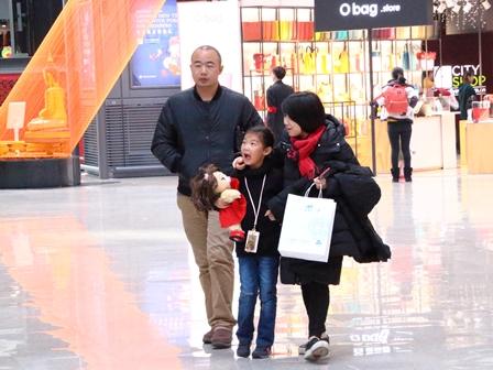 雨水-春節のショッピングモール (2018年2月19日 曇り・中度汚染 最高気温 6℃、最低気温 -3℃)