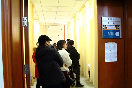 【針灸科の前で順番を待つ人々】