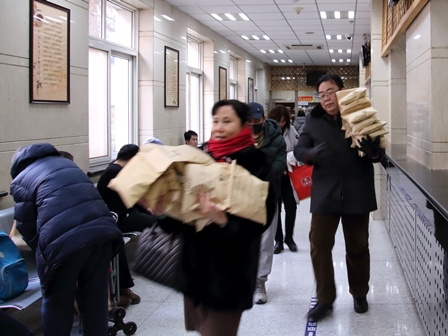 診察と治療、それぞれに事前支払いがあるため、最後に一括支払いができる日本と比べて何度も順番を待つことになります。数えてみると、①登録費の支払いで待ち、②診察で待ち、③治療費支払いで待ち、④治療で待ち、⑤薬代金の支払いで待ち、⑥薬で待ち、以上6回“待ち”がでてきます。このように、患者は病院に来ると悪化してしまうほど長い時間がかかります。通常、北京の人たちは、このような事態になることが分かっていますので、患者一人で病院に行くことはほとんどありません。子供ならば父母から祖父母まで、大人ならば夫や妻から両親や兄弟まで、家族総出が一般的です。