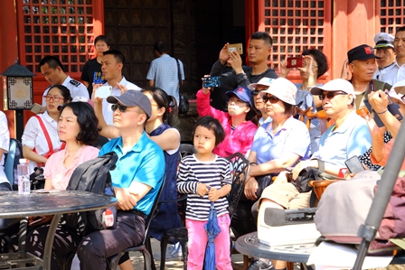 【中国伝統音楽の演奏会に聞き入る人たち】
