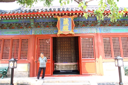 【智化寺の蔵殿、中に見えるのが轉輪蔵(てんりんぞう)という経典をしまうところ】