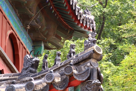 【鐘楼の瑠璃瓦に置かれた仙人と獣たち】