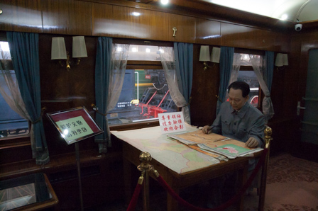 展示車両の“センター”の位置には、“毛澤東號”、“朱德號”と名付けられた機関車が展示されています。日本の狭軌(線路の幅:1,067mm=3フィート6インチ)の機関車を見慣れた目には、大陸の標準軌(1,435mm=4フィート8インチ半)の機関車は二回りくらい大きく感じられます。太い胴体など実に堂々とした機関車です。