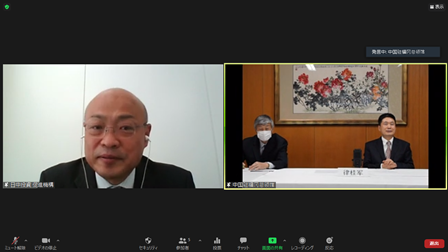 4/20(火)駐福岡総領事館・律桂軍総領事及び王伝東領事とオンライン面談を行いました。律総領事からは最近の大連地区経済状況の説明の後、5/13日開催予定の「中国大連・日本九州協力セミナー」及び「中国(大連)地方発展協力モデル区説明会」への当機構後援への謝意ががありました。岡事務局長からは当機構の活動状況説明とともに当該セミナー案内の機構HP掲載及び出席・挨拶了解の旨報告し、引続き適宜連携してゆく事といたしました。尚、当該セミナーに参加ご希望の方は添付ご案内参照の上、直接事務局までお申込み願います。