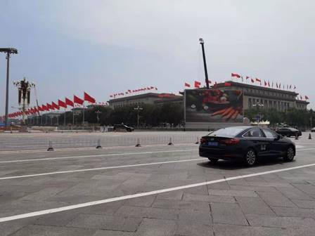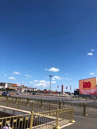 6月30日(水)の午後、用事で天安門広場を通過しました。下図は車内から撮影したものです。様々な準備作業が実施されているようです。天安門の両側の観客の座席は既に設置済みでした。