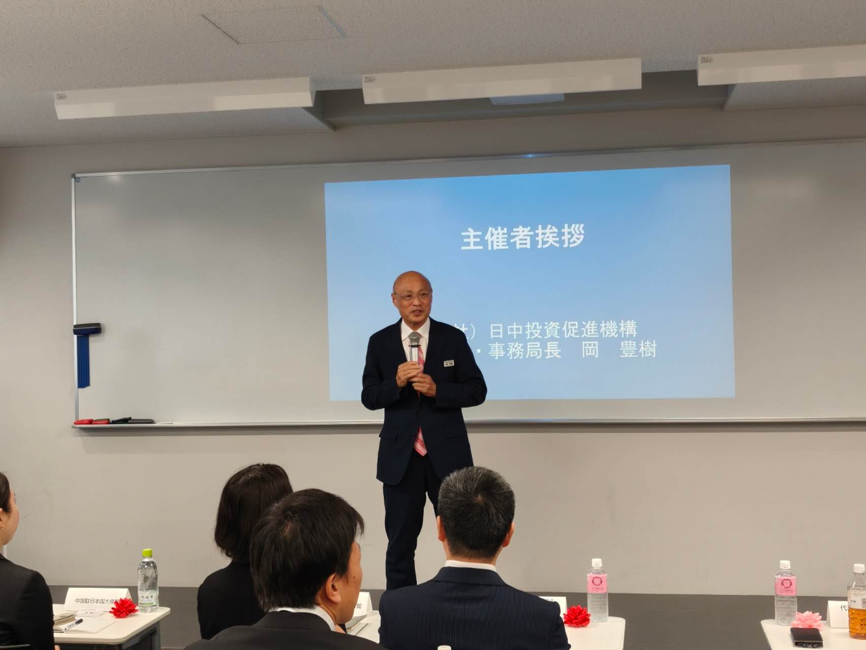 ご来賓として、経済産業省、外務省関係者からご挨拶を頂いただけでなく、在日中国企業協会会長 王家馴様、中国国際貿易促進委員会駐日本代表処首席代表 史銘首席代表、桜美林大学大学院院長 雷海涛 様、当機構事務局長の岡豊樹から日中関係の一層の強化に向けた熱い言葉をいただきました。