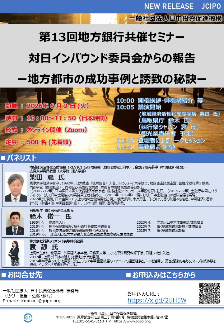 担 当:一般社団法人日中投資促進機構 セミナー担当