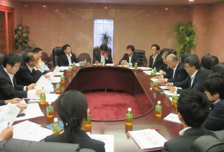 今回は経済商務処を会場に開催していただいたもので、大使館側からは劉亜軍公使はじめ11名、当機構からは14名が参加しました。