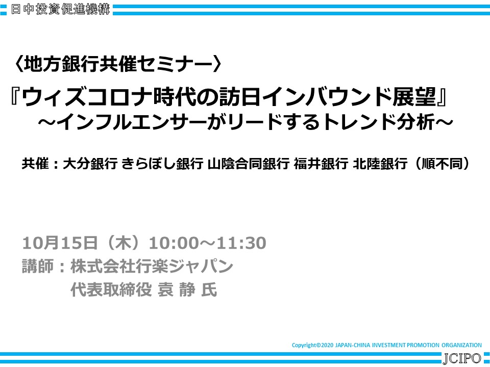 日中投資促進機構は、2020年10月15日(木)に地方銀行共催セミナーを開催しました。