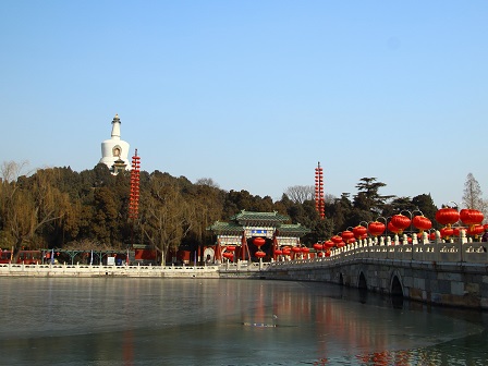 【北海白塔が建つ瓊華島(けいかとう)と白い石橋】