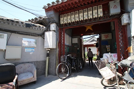 【銭糧胡同の大雑院。門の上に置かれた電気メーターは10個、それだけの世帯が住んでいると想像される】