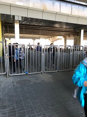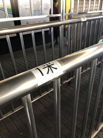 朝のラッシュアワーは一番混んでいますので、駅の入り口に「限流柵欄」が設置してあります。