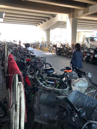 双橋駅付近の自転車置き場です。自宅から地下鉄駅まで自転車を利用する人が多く、駅付近はいつも自転車でいっぱいです。