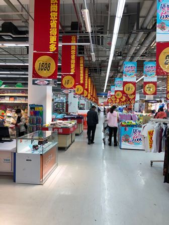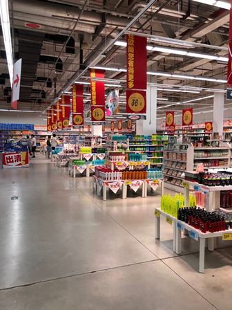 今週は北京市の東5環路の郊外にある大手スーパーAuchanの様子をご紹介させていただきます。Auchan(中国語名:欧尚)はフランスの小売店ブランドであり、1999年より中国に進出し、現在中国全土で70店舗を展開しています。家賃の高騰やネット販売の流行等に伴い、大手スーパーは市内中心部では次第に減少していき、将来的には郊外でしか見られなくなるでしょう。