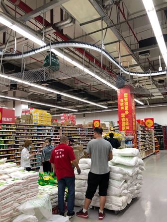 Auchanはネット販売にかなり力を入れ、店にはデリバリー専用の空中輸送レールもあります。