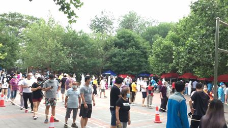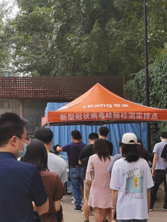 3、海淀区万寿路(西三環路)の検査場です。任意検査ですが、心配から子供を連れて検査を受ける市民もいます。