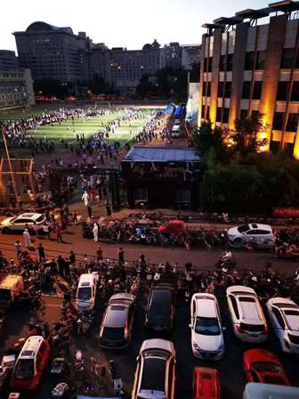 豊台区豊台体育館の検査場です。予約がいっぱいで夜になっても検査が続いています。