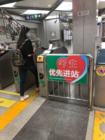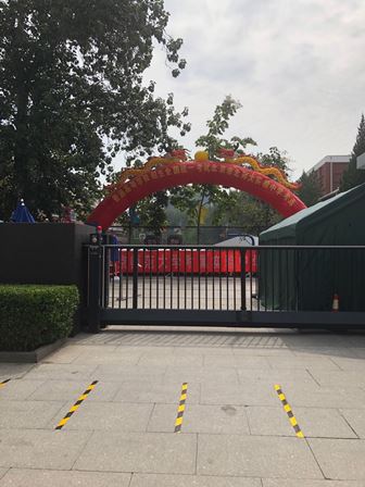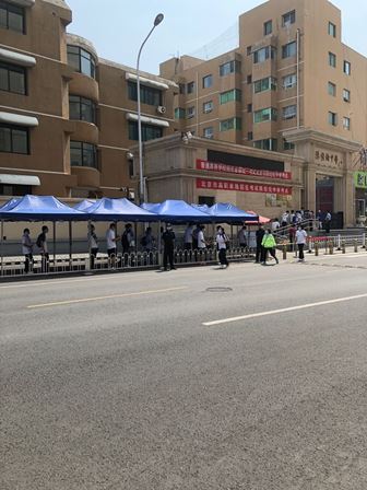 朝陽区東大橋にある名門学校「陳経倫中学」受験会場の様子です。受験生は体温検査のブースを経由して入場します。