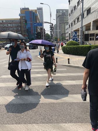 ホテルから試験場に向かう受験生及びその親たちの様子です。受験生の快適な昼休みを確保するため、試験期間中のホテルルーム予約は大人気で値段も上がっています。中国において「高考」期間中、親たちは殆どが受験生に同行して、試験場の近くで試験が終わるまで待っています。