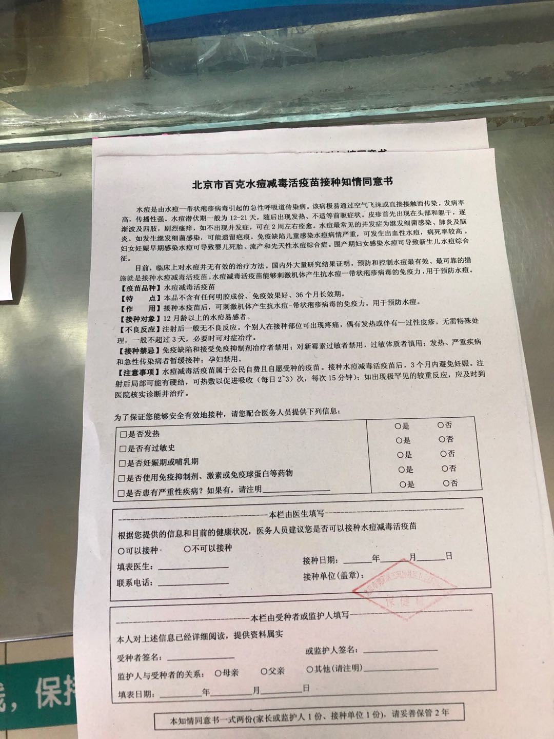 記入後、窓口のお医者さんに提出し、お医者さんからもう一度子供の健康状況を口頭で確認します。問題なければ注射を受けることができます。