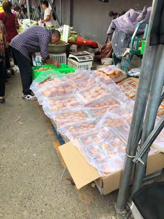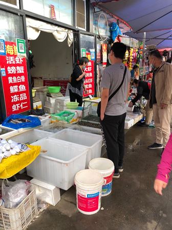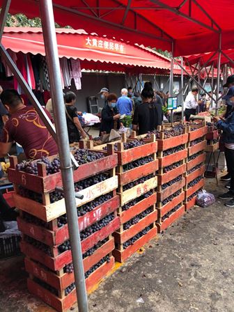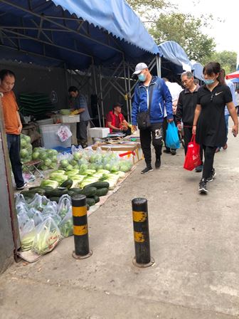 今回ご紹介するのは大黄荘自由市場(中国語では「早市」といいます)で、東五環路の外側に位置し、朝6時から10時まで営業しています。コロナ以来、自由市場の管理も厳しくなり、大黄荘自由市場の営業面積や営業内容等も縮小されました(海鮮販売や生肉販売等が減少)。現在は、野菜や果物、調味料、生活用品、衣類等に集中しています。