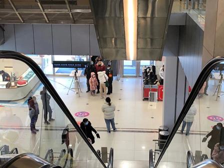 中に入って、まず入り口で体温検査があります。体温検査を経て2階に上がります。