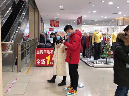 北京は現在真冬で、最近の最低気温は-10度を割ることもあり、一年中一番寒い時期に入っています。ですから、長いダウンが一番人気だそうです。ブランドやデザインにより、300元~1000元以上等様々な価格帯の商品を揃えています。