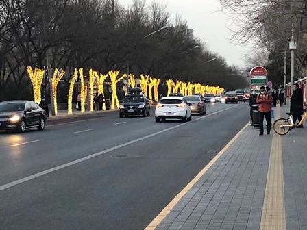 除夕(大晦日)の前日から、自宅付近の道路は大きい灯篭で飾られ、街路樹はLED等が飾られ、夜になると、「春節」の雰囲気です。