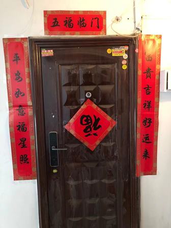 除夕の当日、ほとんどの家庭は新しい「春聯」を扉に貼り付けます。部屋の中は普通赤い「福」を張りつけるのが習慣です。