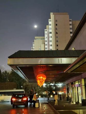 「元宵節」では月見をする人も多く、今年は割と天気が良くて月がはっきり見えました。下図は長富宮ホテルの玄関から撮影した「満月」です。