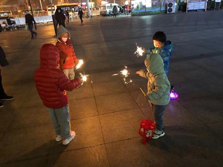 「元宵節」の夜は非常に賑やかです。各地では普通、飾り灯篭を見る「灯会」もありますが、今年コロナのせいで自宅付近では「灯会」がなく、非常に残念です。それにしても、家族で揃って町に出て、爆竹や花火等で遊ぶ人も多いようです。