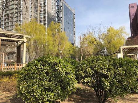 22日の午後、北京事務所所在の長富宮弁公楼経由で翌日午前中の注射を予約しました。23日は朝8:30から11:00迄が接種時間帯です。当日の仕事に影響しないように、朝早めに行く人も多いようです。私も朝早く家を出て、8時頃地下鉄を降りて、接種拠点に向かいました。下図は途中で通過した道端の柳の様子です。