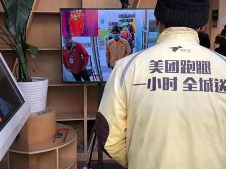 ワクチン接種室の入り口では、大きいスクリーンが設置され、入場者の体温を自動的に測ります。