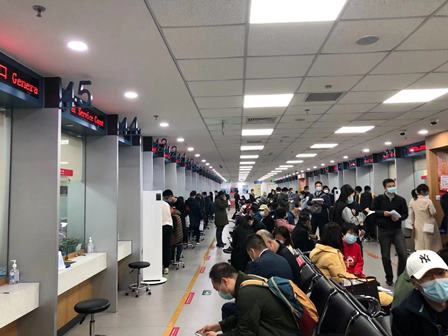 今回の手続きは2階で受付されますので、直接2階に上がりました。人があまりにも多くて、少し驚きました。最近、北京市不動産取引の活発化(2021年3月単月の取引量は22,172軒、2017年3月以来の最高値)が原因で、不動産登記センターはいつも人でいっぱいだそうです。また、コロナの影響もあり、何か手続きで行きたい場合、少なくとも半月以上前に予約しないと入れないようです。