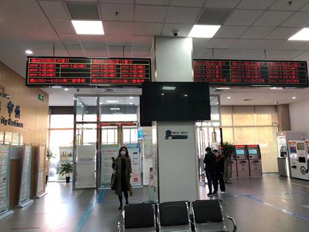 2階には座るところもなく、まだ時間がありますので、1階に戻り椅子で座って待っていました。とても混雑しているため、各階には呼び出し用のスクリーンが取り付けられています。