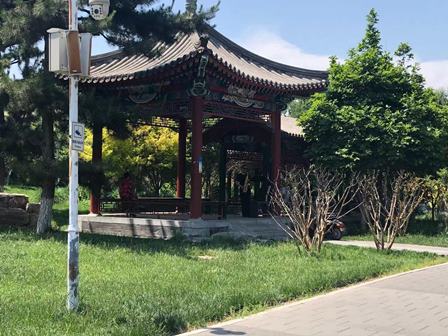 「城墻」から少し離れたところに「長廊」が設置され、ここで休憩したり、楽器を演奏したりするお年寄りも沢山います。