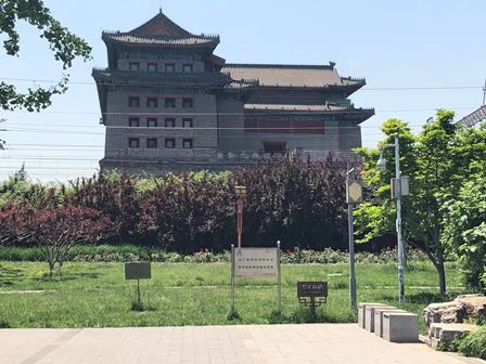 もう少し歩いてい行くと、東便門の角楼が目に入りました。この角楼は最初は明代に作られ、500年以上の歴史があるそうです。本来は「箭楼」で、「箭窓」144個を設置し、モンゴルの侵入を防御する施設でした。