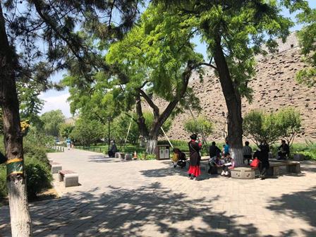 「城墻」に沿って銀杏等の樹木が植えられ、2環路沿いの立地となっていますが、かなり静かな感じで、中で散歩している人も多いようです。