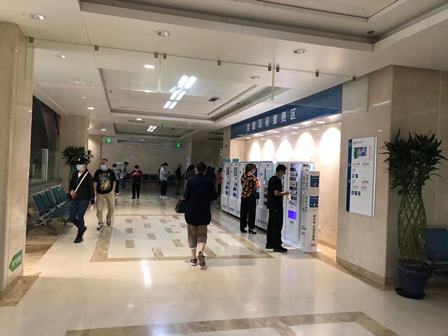 病院に入って、1階の機械より事前に予約した番号を取り出して、それから小児科の順番確認の機械に当てて、先着順で最終的な受診番号が出てきます。